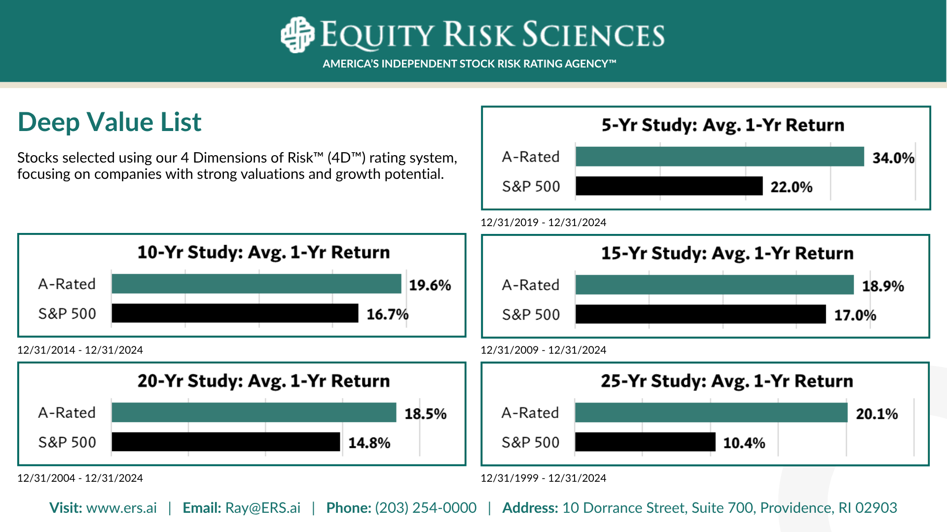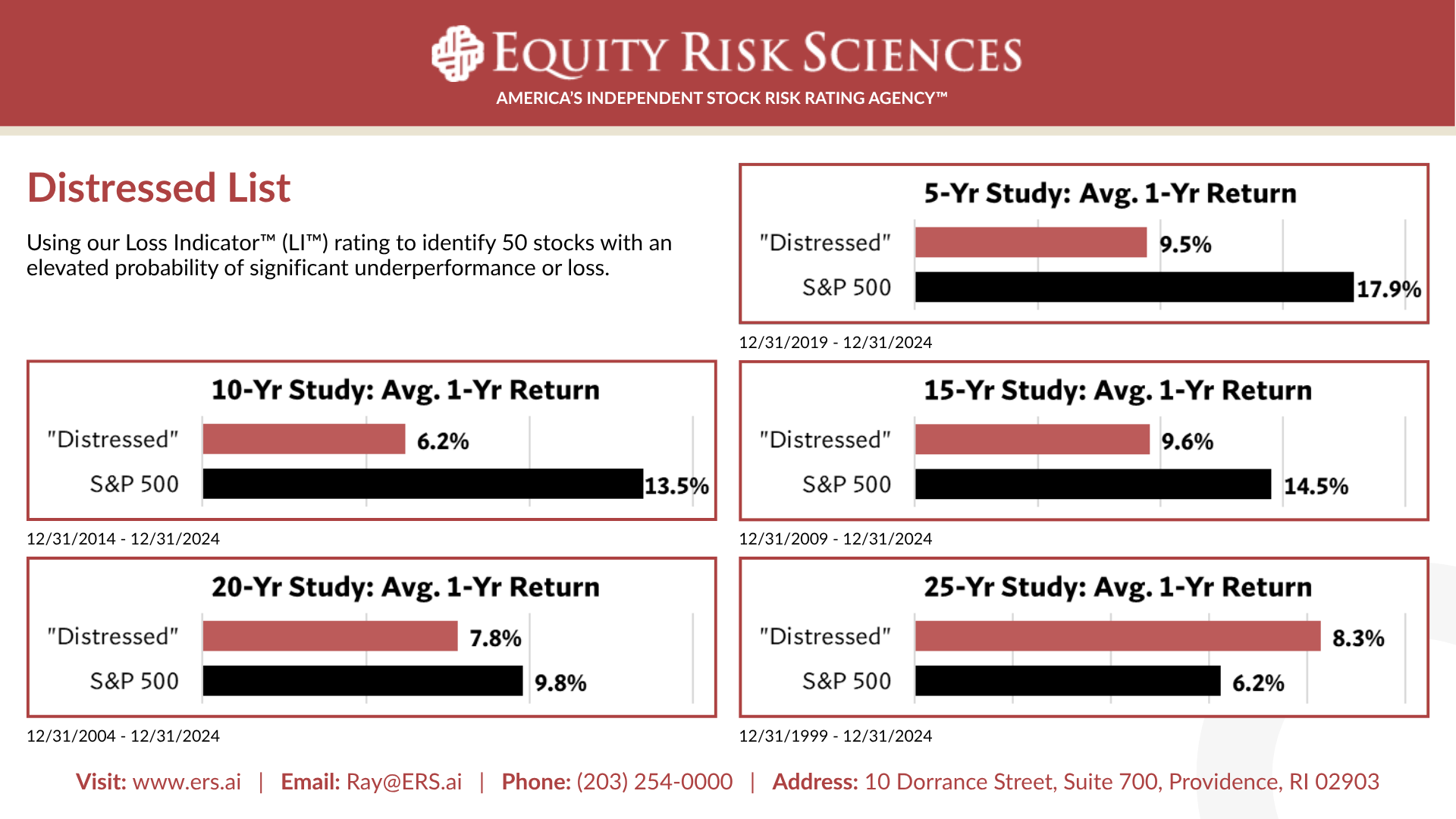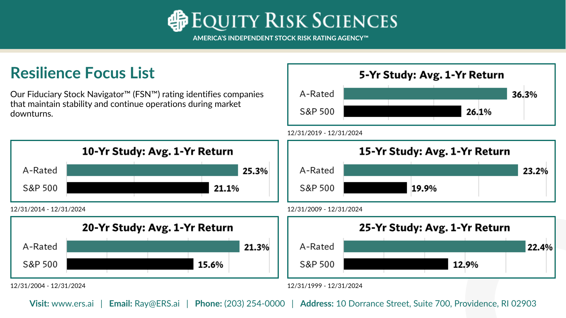 Equity Risk Sciences (ERS) is a stock risk rating agency dedicated to making investing safer and more profitable. Our data-driven models evaluate the probability and magnitude of stock price changes, giving fiduciaries, advisors, and investors objective clarity. With ERS, you gain the confidence to build portfolios that protect capital, capture opportunities, and meet the highest fiduciary standards.